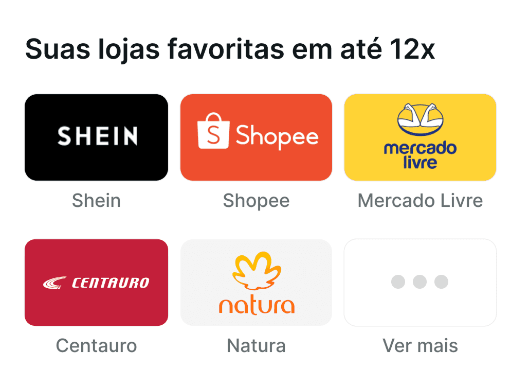 Sua forma de pagar parcelado com as nossas lojas parceiras sem comprometer o limite do cartão :)